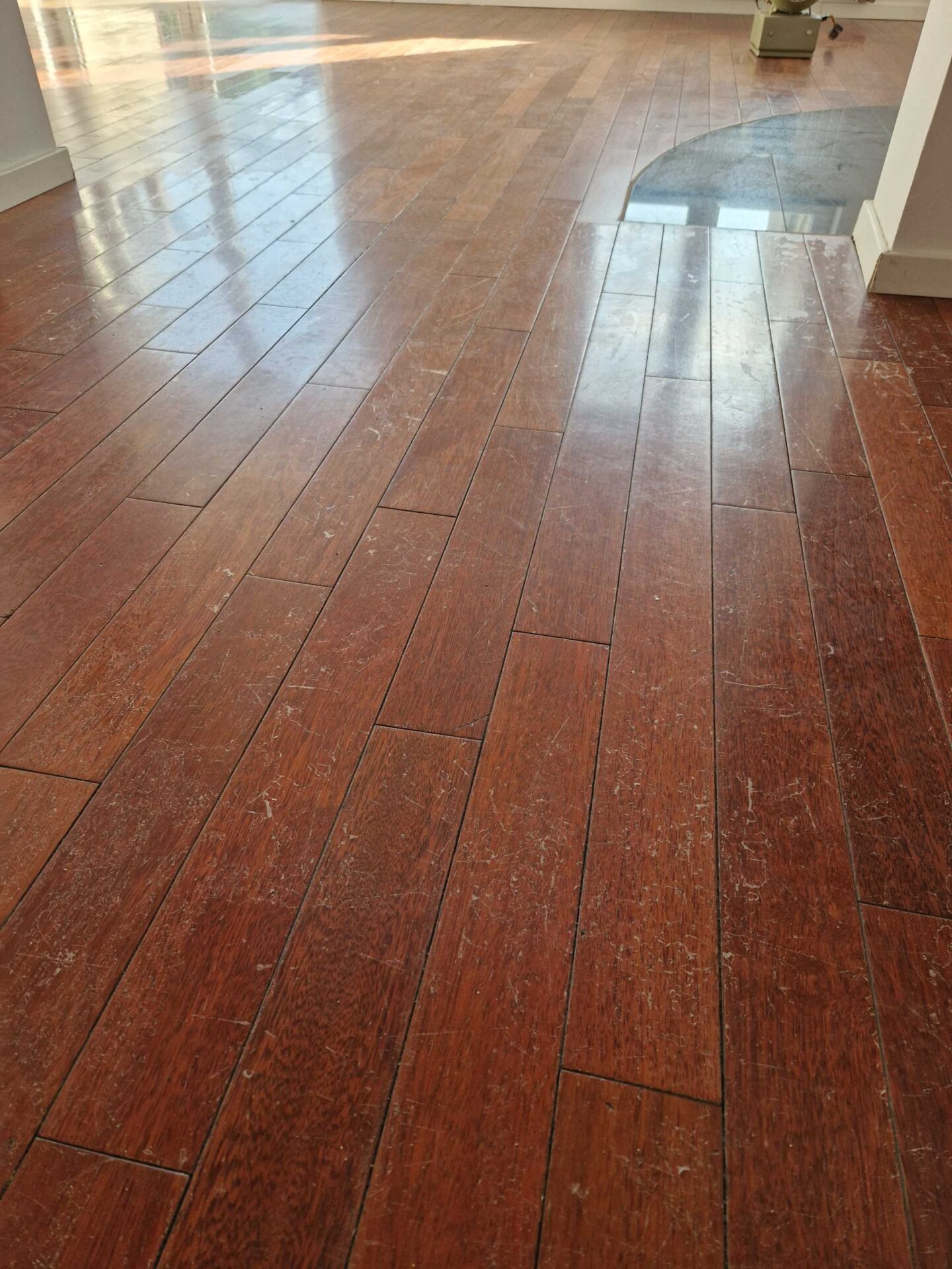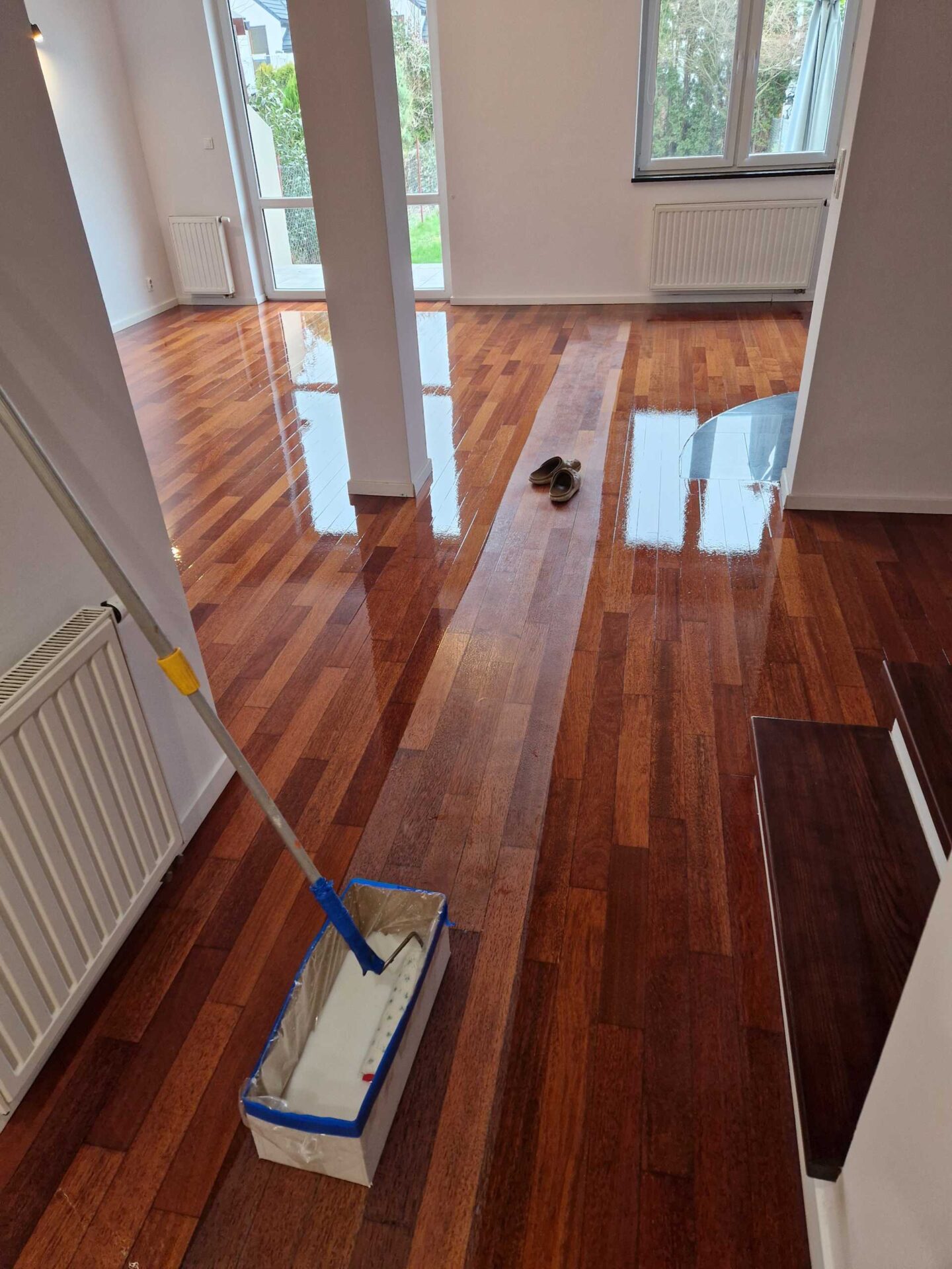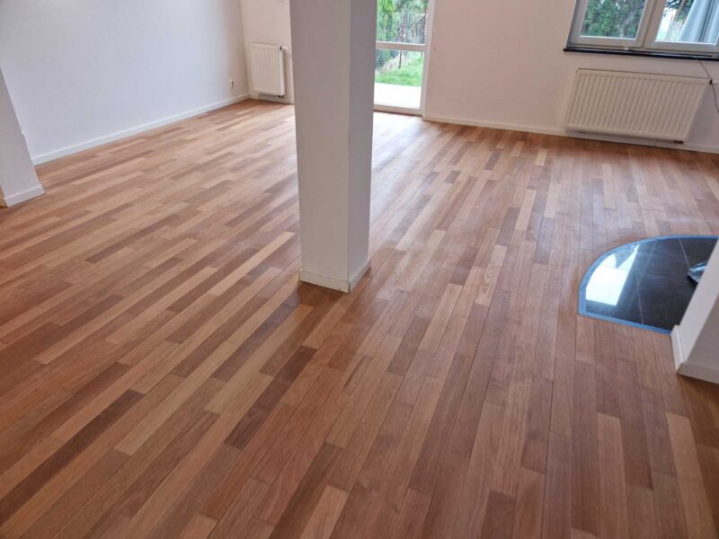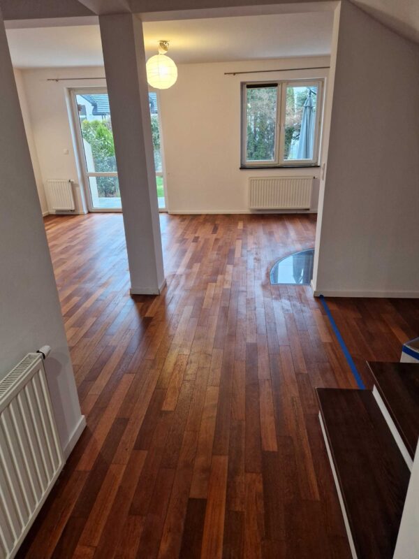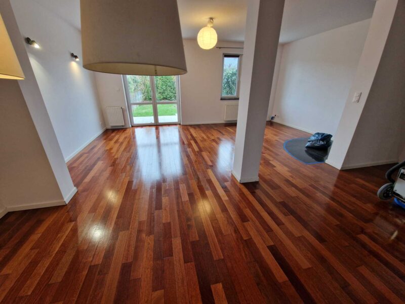 Renowacja posadzki drewnianej z drewna egzotycznego „Merbau”