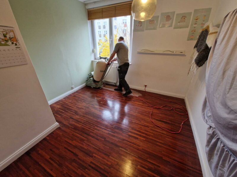 Renowacja deski parkietowej firmy „Chapel” na Wrocławskim Biskupinie
