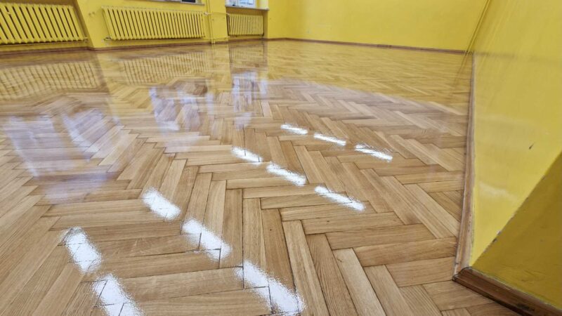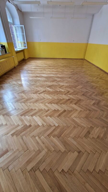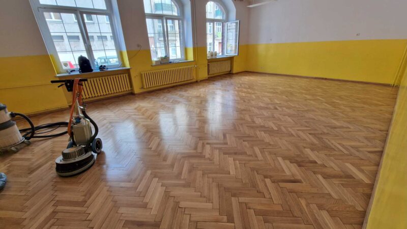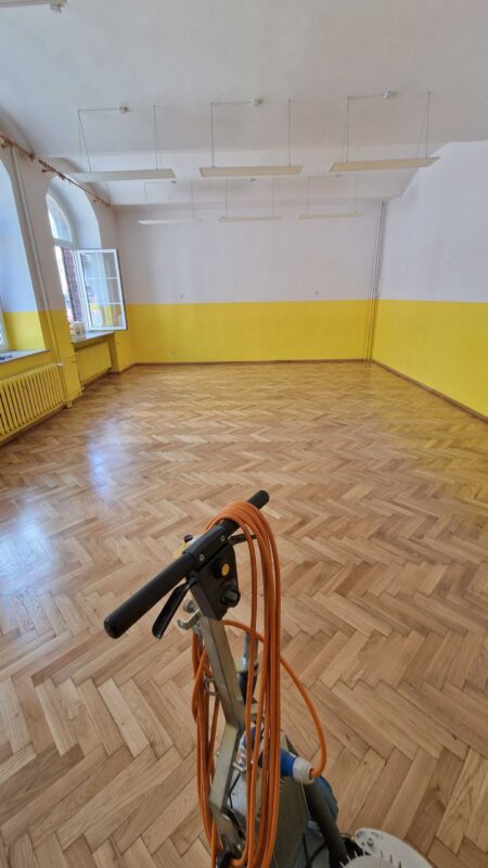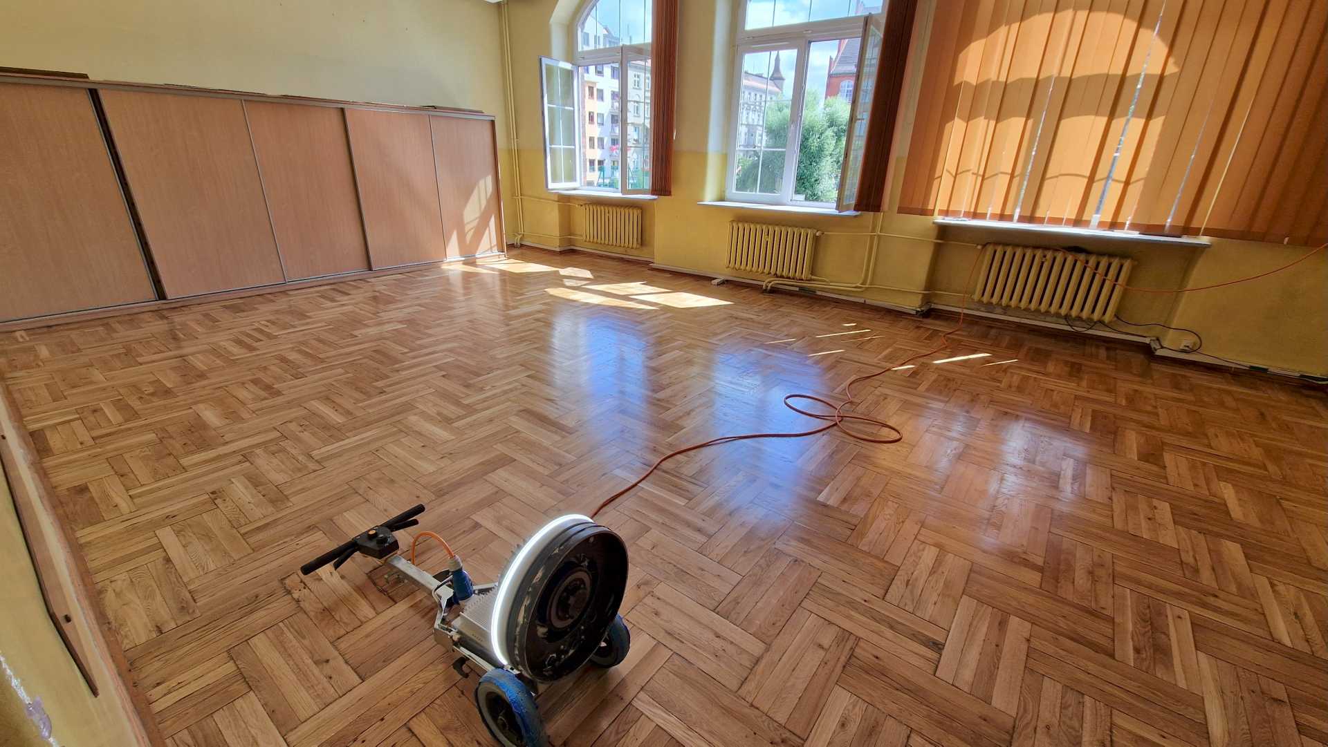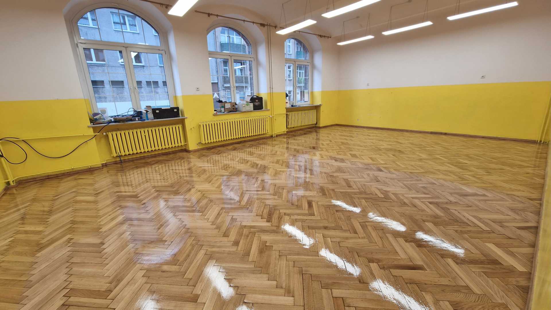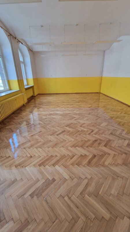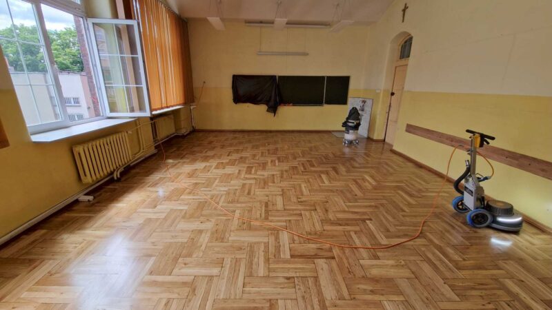 Szkoła Podstawowa 74 we Wrocławiu – Szlifowanie i lakierowanie parkietu