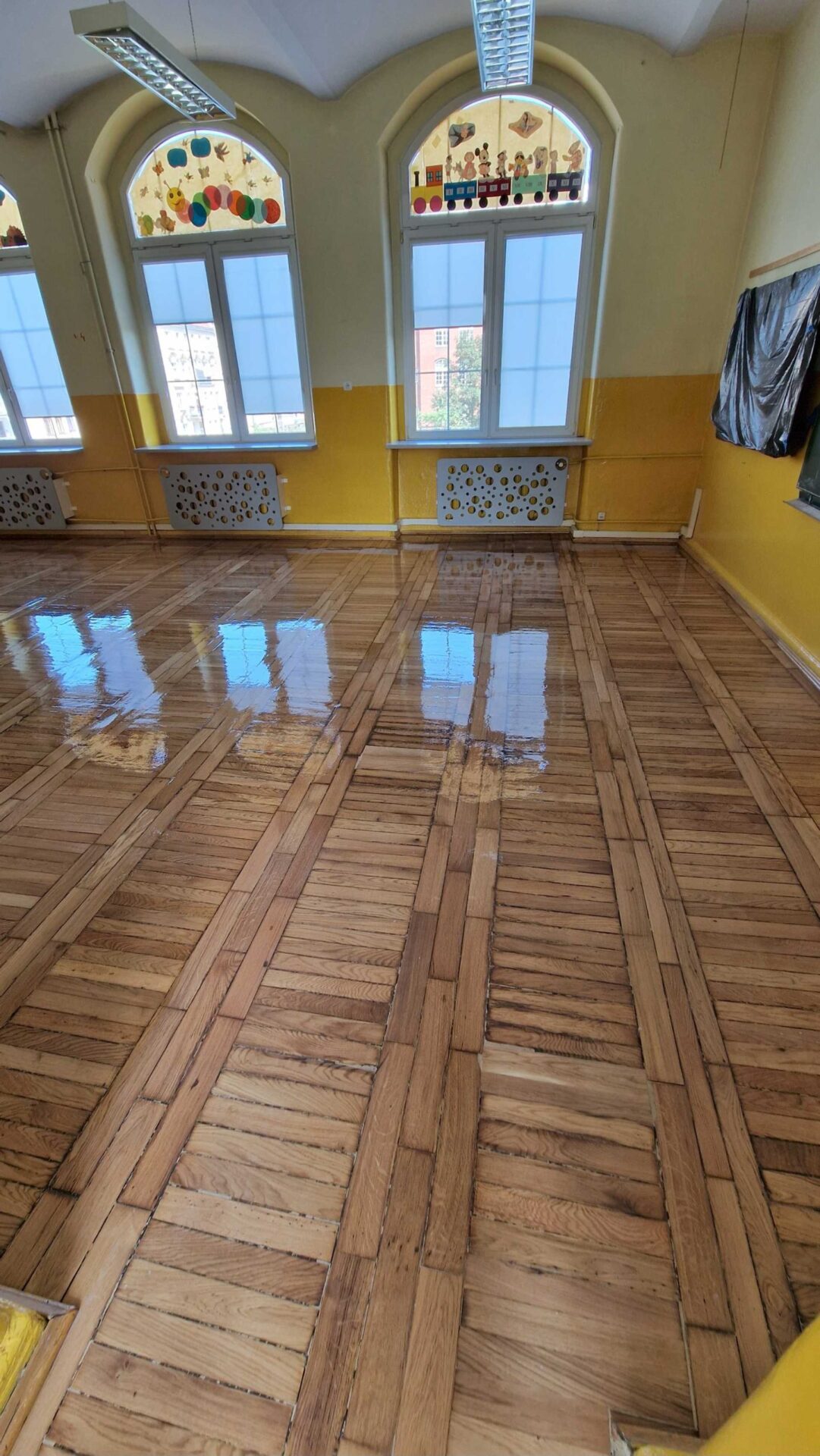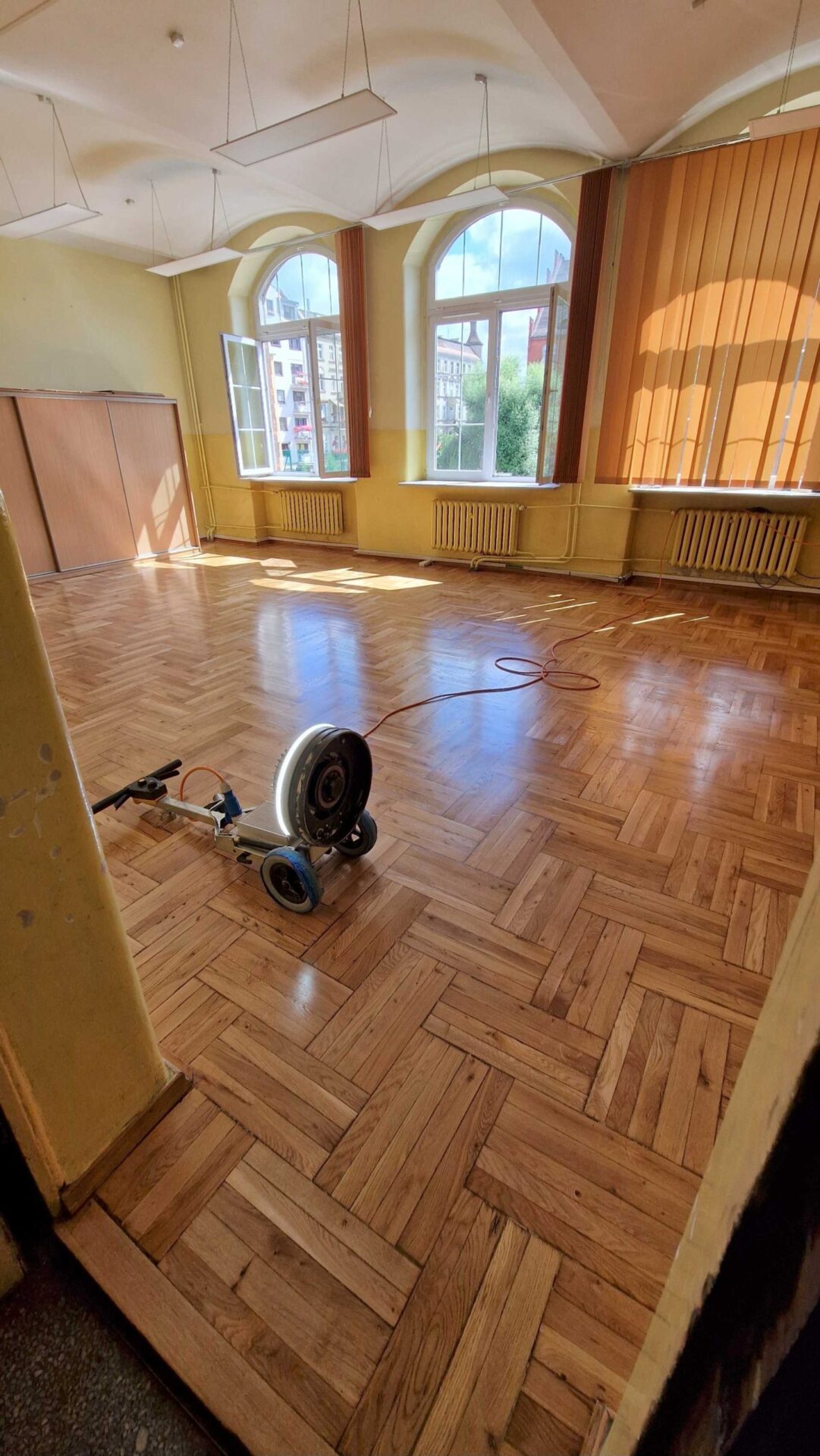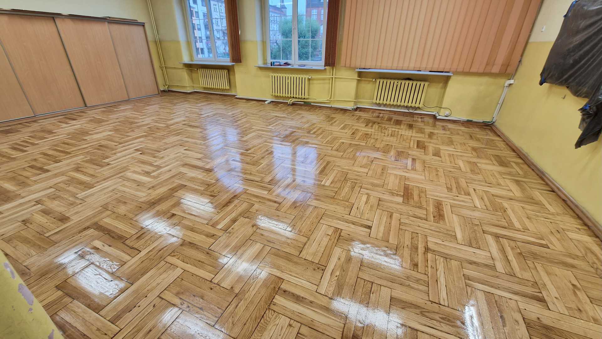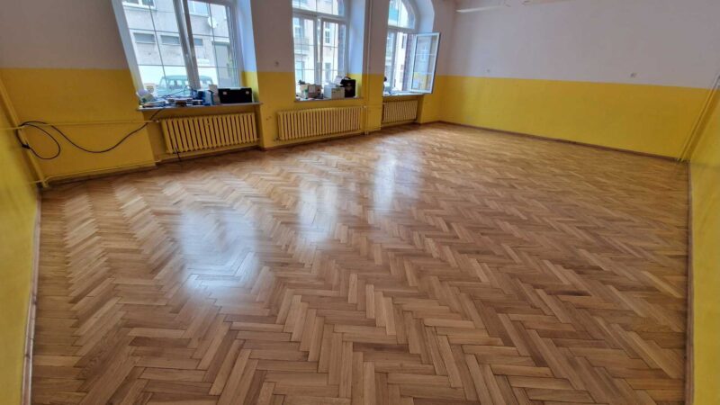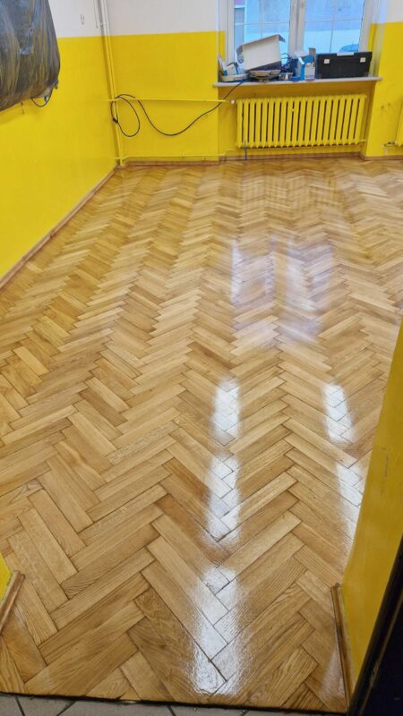 Szkoła Podstawowa 74 we Wrocławiu – Szlifowanie i lakierowanie parkietu