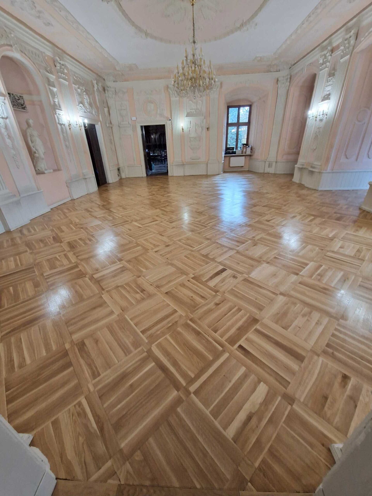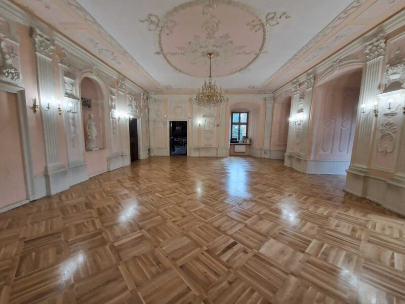 Kompleksowa renowacja drewnianych podłóg w historycznych wnętrzach. Połączenie tradycyjnych technik z nowoczesnymi zabezpieczeniami.