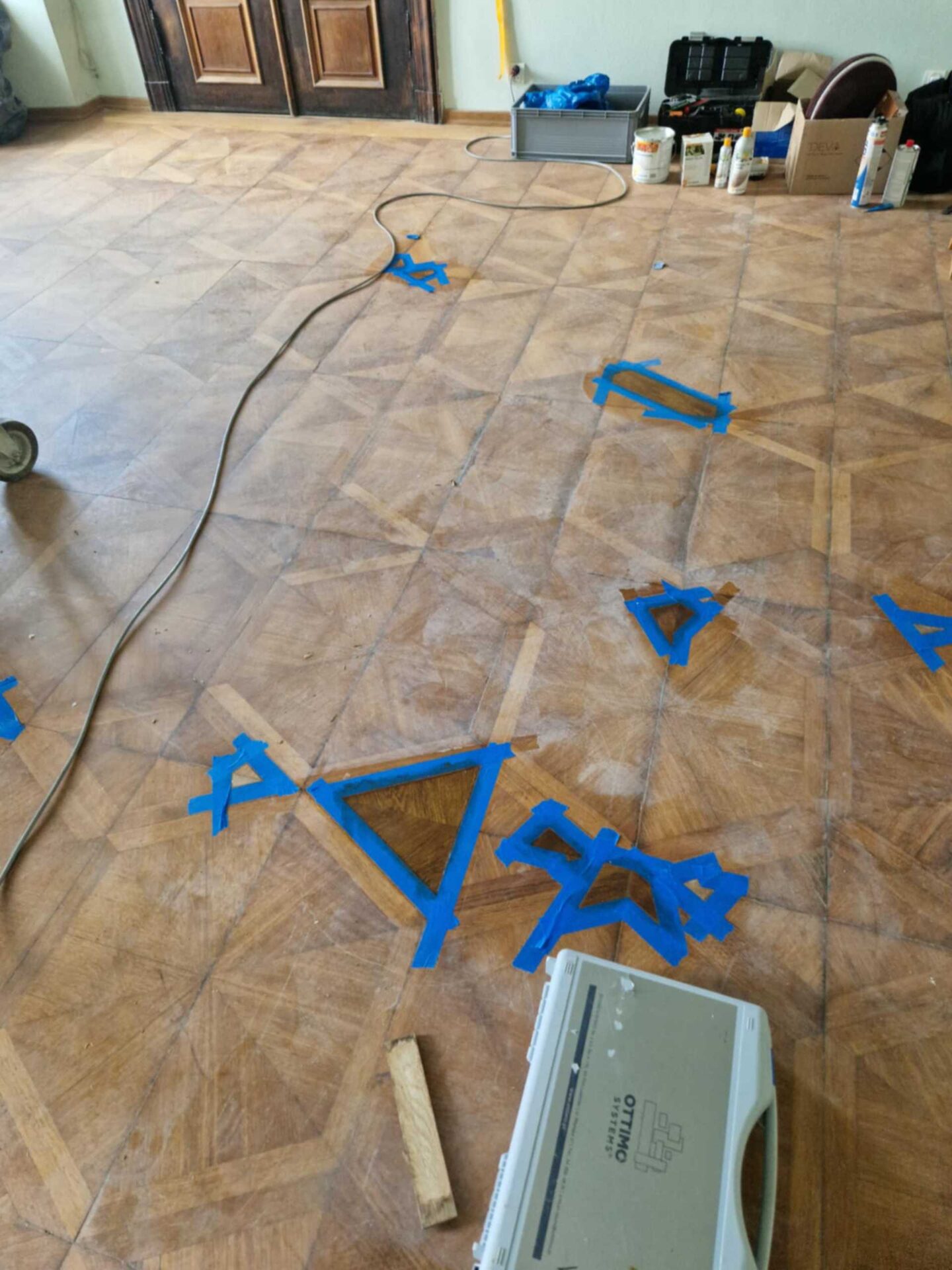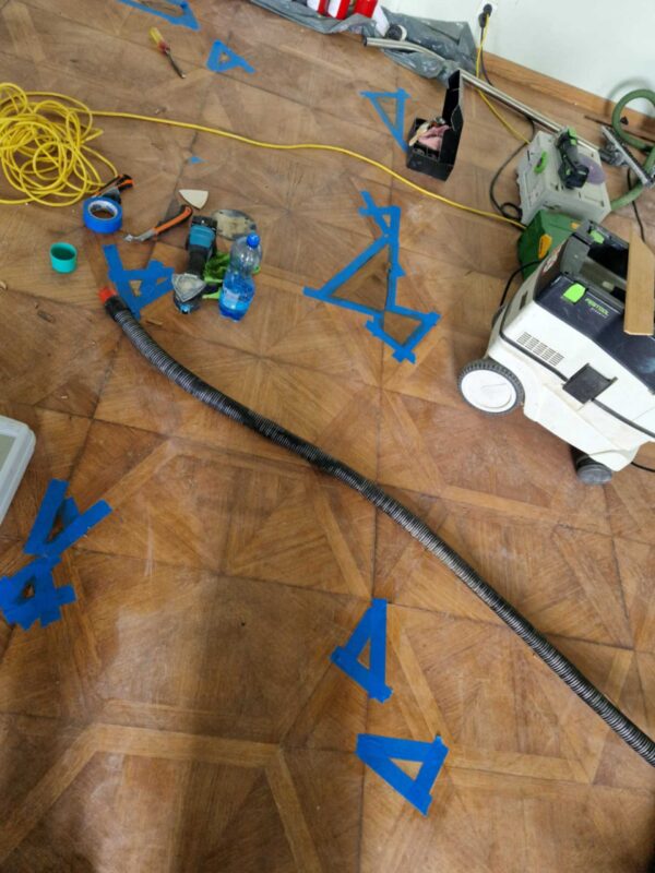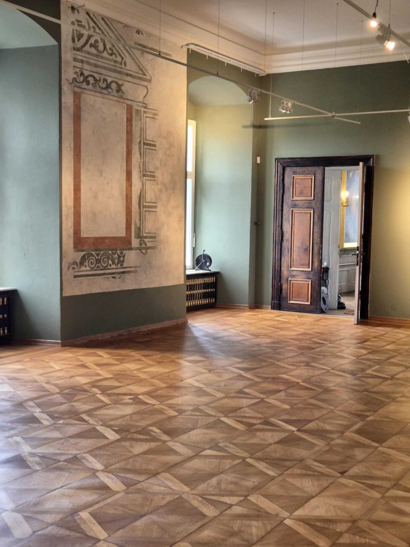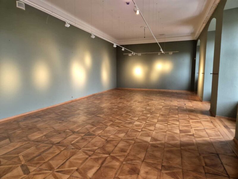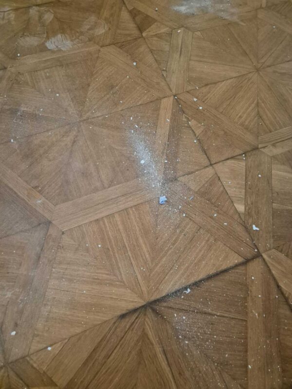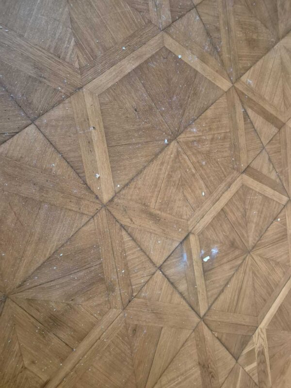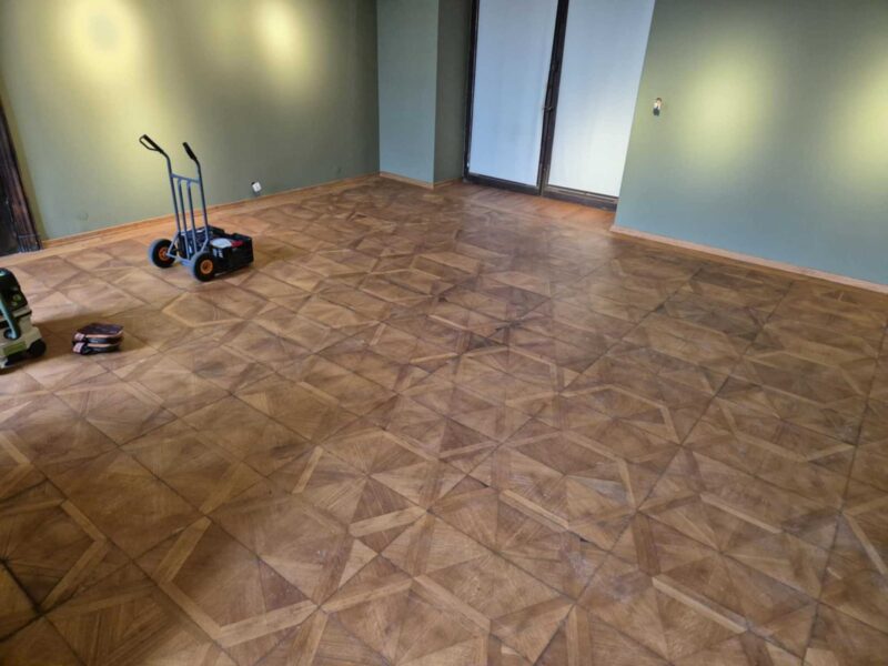 Renowacja zabytkowych podłóg w reprezentacyjnych salach zamku. Prace wykonane z poszanowaniem historycznych detali i oryginalnych materiałów.