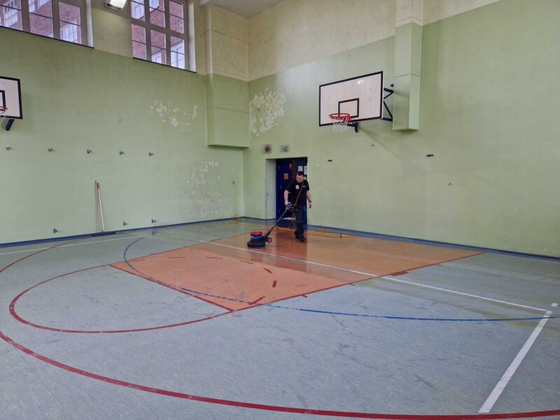 Zespół Szkół nr 9 we Wrocławiu – Cyklinowanie i lakierowanie szkolnej sali gimnastycznej