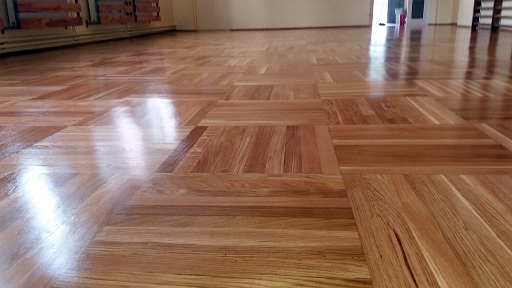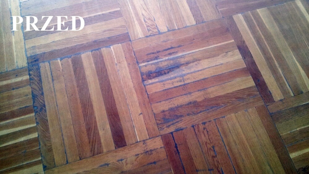 Prace obejmowały: Cyklinowanie parkietu, szpachlowanie, lakierowanie podłogi.