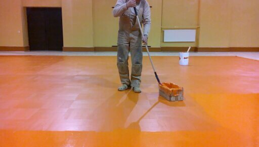Galeria przedstawia zdjęcia prac przy renowacji sali sportowej w Trzebnicy. Zlecenie zostało wykonane na lakierach chemoutwardzalnych poliuretanowych marki „DOMALUX”, w wersji POŁYSK.